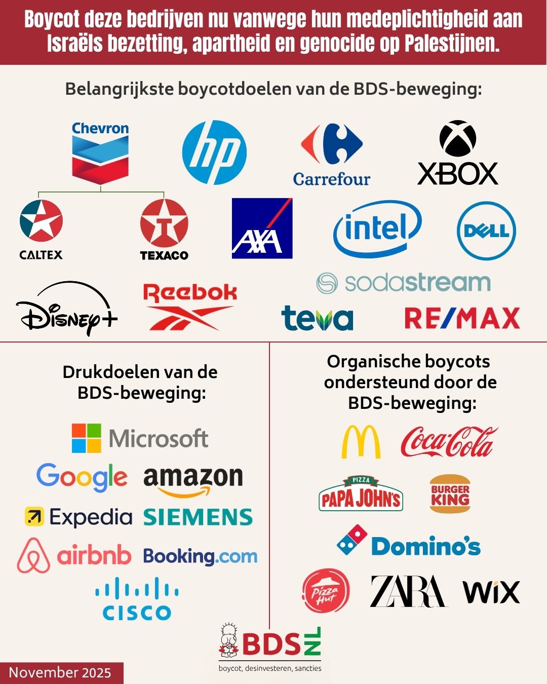BDS richt zich bewust op een beperkt aantal duidelijke doelwitten. Dat zijn bedrijven, merken of instellingen die aantoonbaar meewerken aan schendingen van Palestijnse rechten.